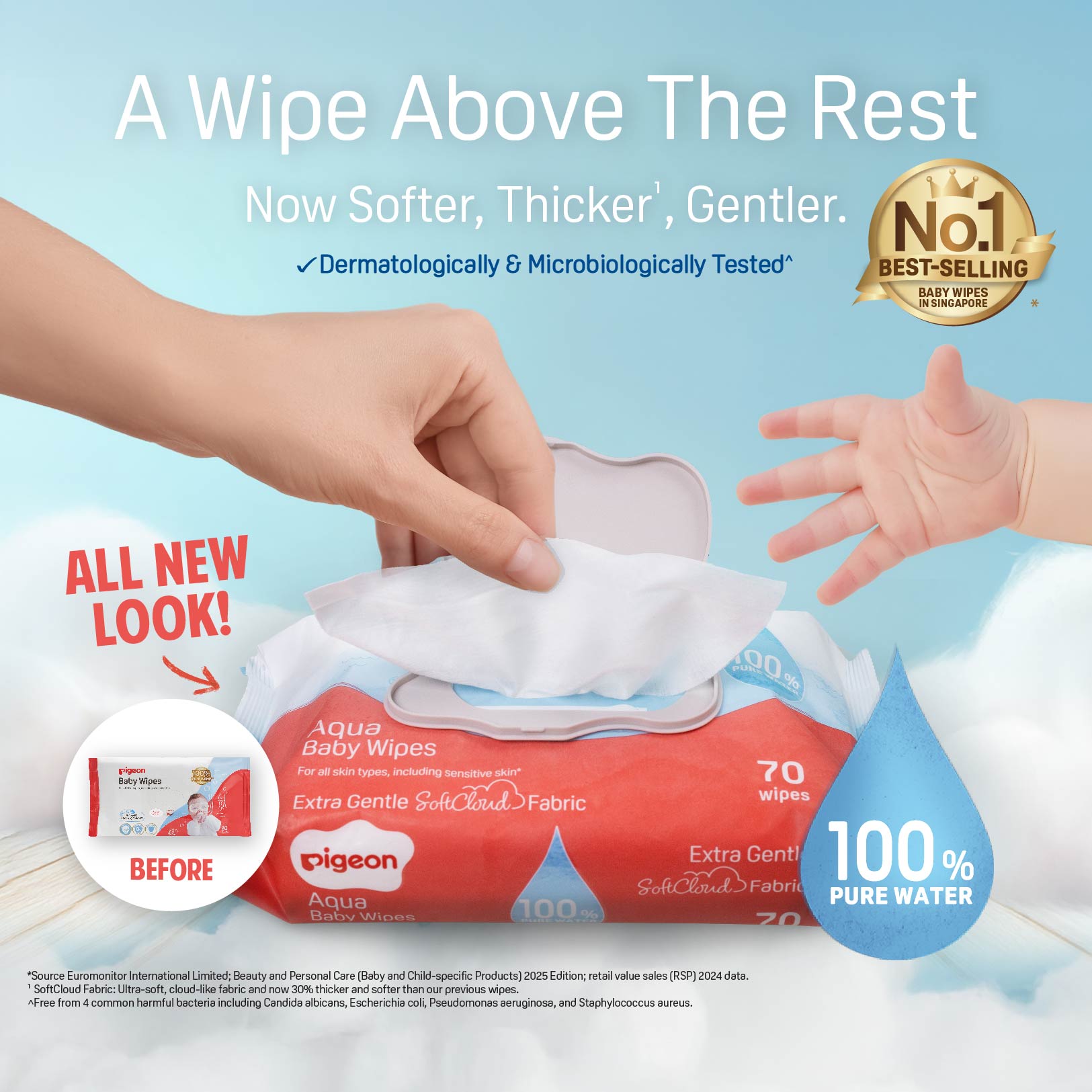 Pigeon Aqua Baby Wipes (20 Wipes x 3)