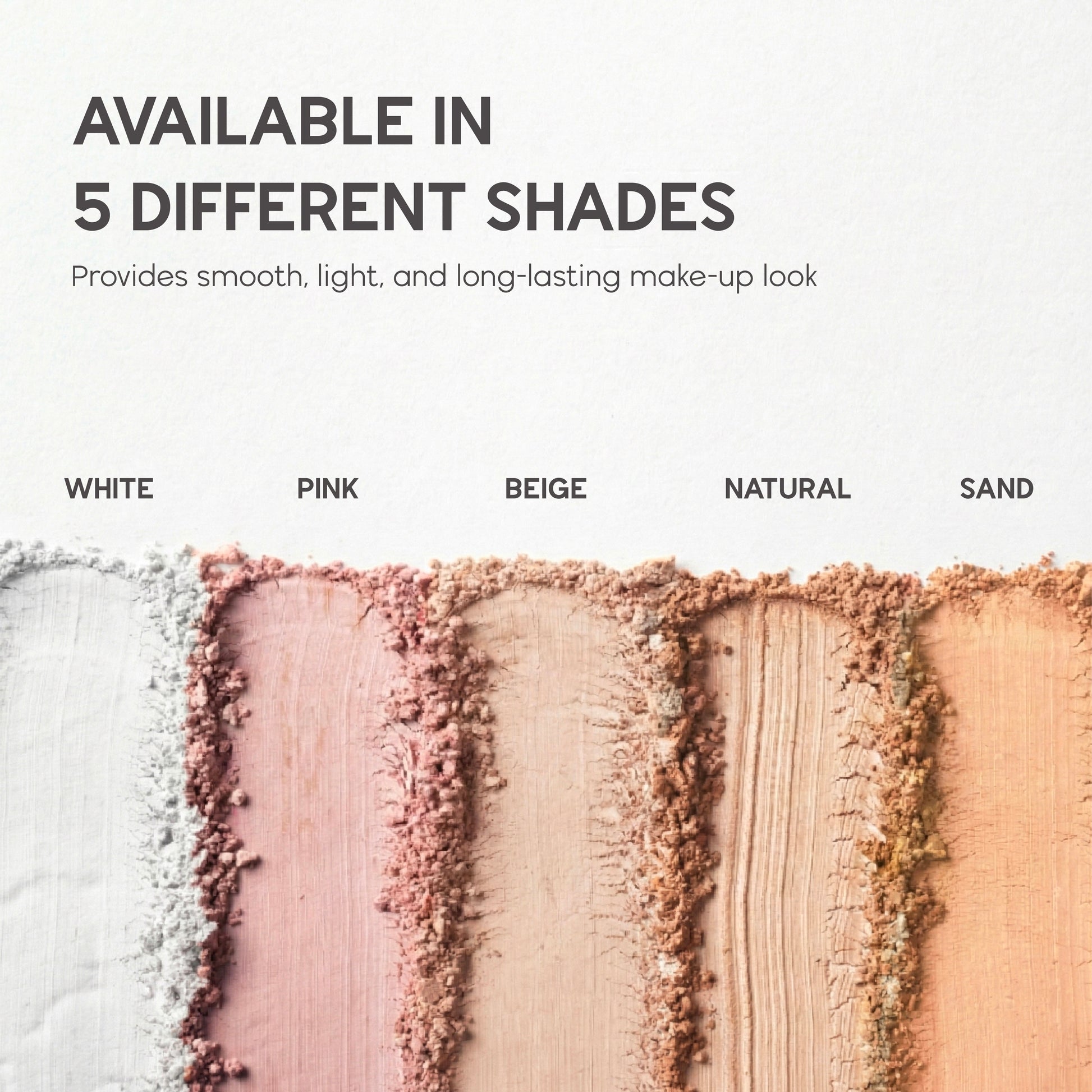 Available in 5 different shades: White, Beige, Pink, Natural & Sand