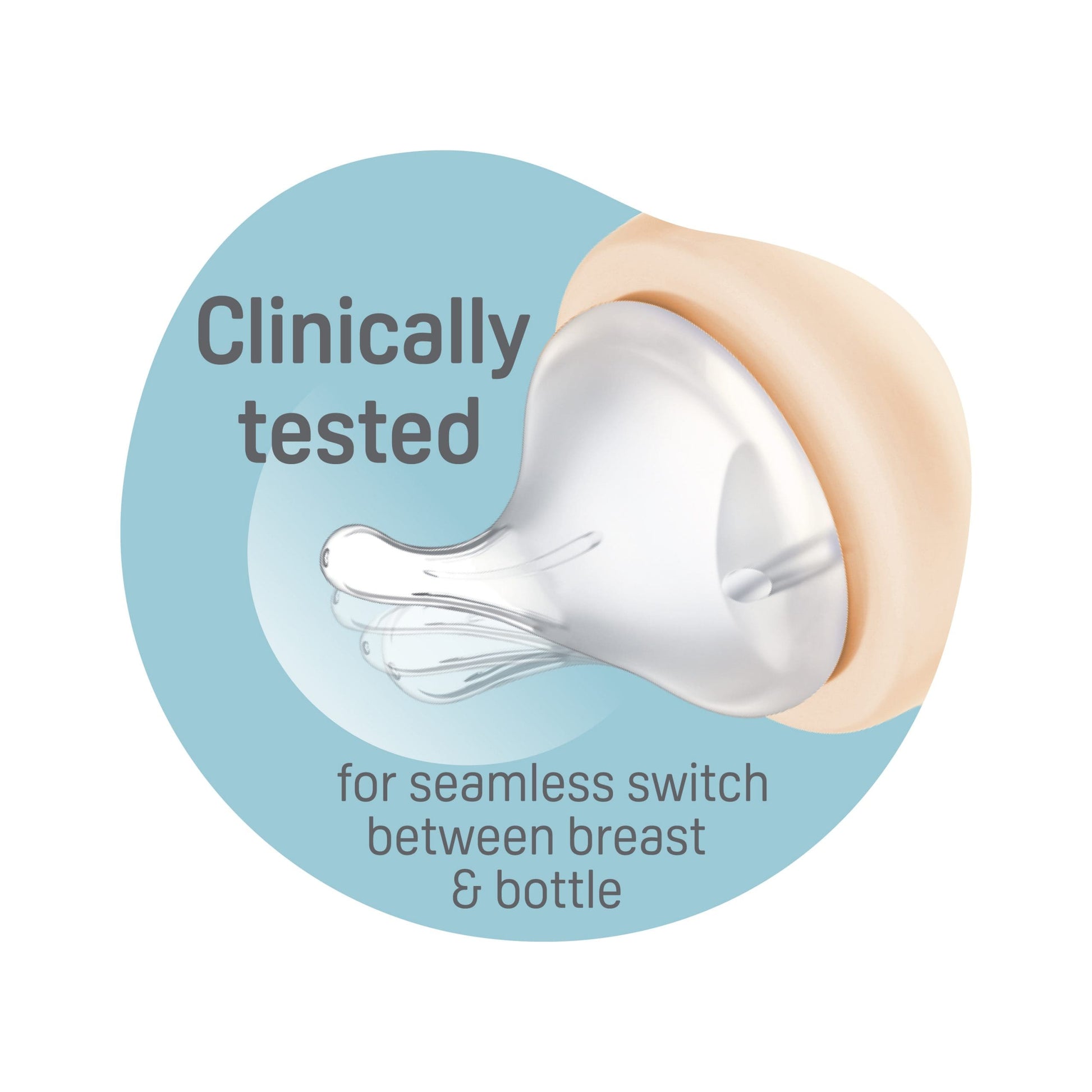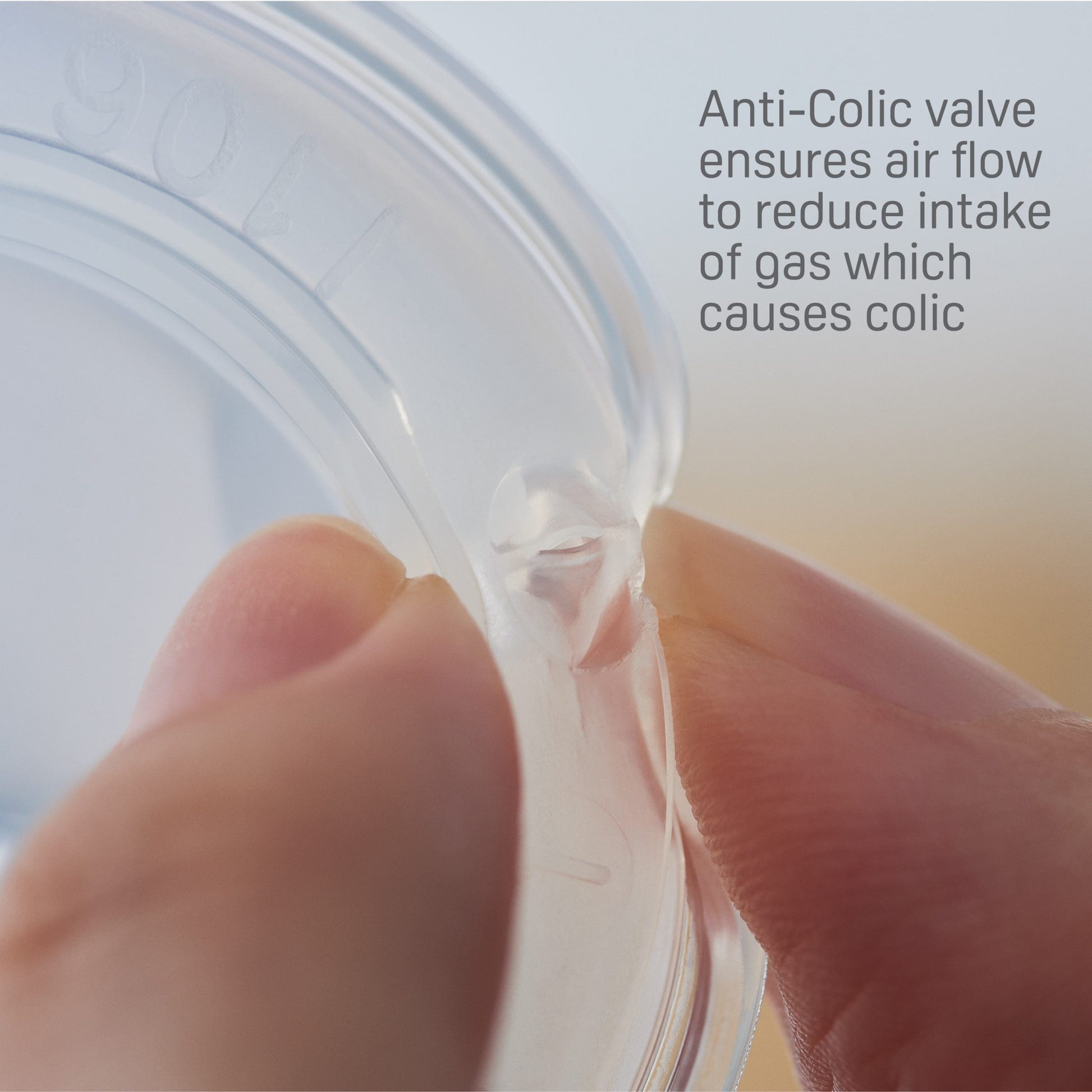Anti-colic with advanced air vent system that minimises swallowed air as baby drinks.